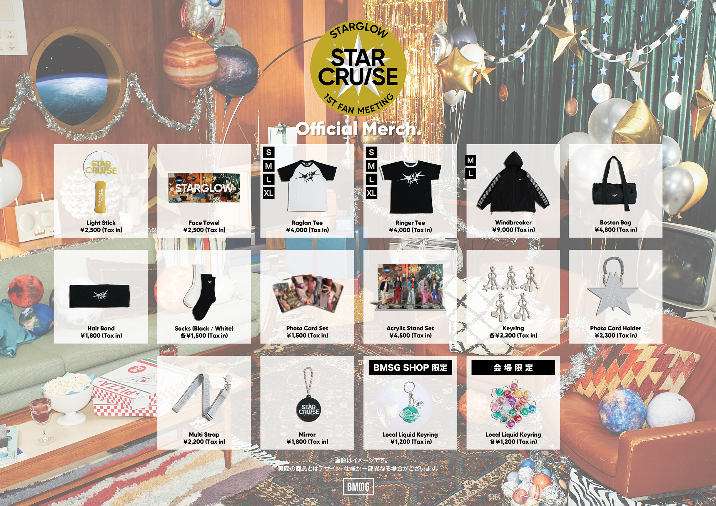 ※BMSG SHOP事前販売での特典付与対象商品は「STARGLOW 1st Fan Meeting -STAR CRUISE- Official Merch.」のみです。その他の商品と合算することはできませんので、あらかじめご了承ください。