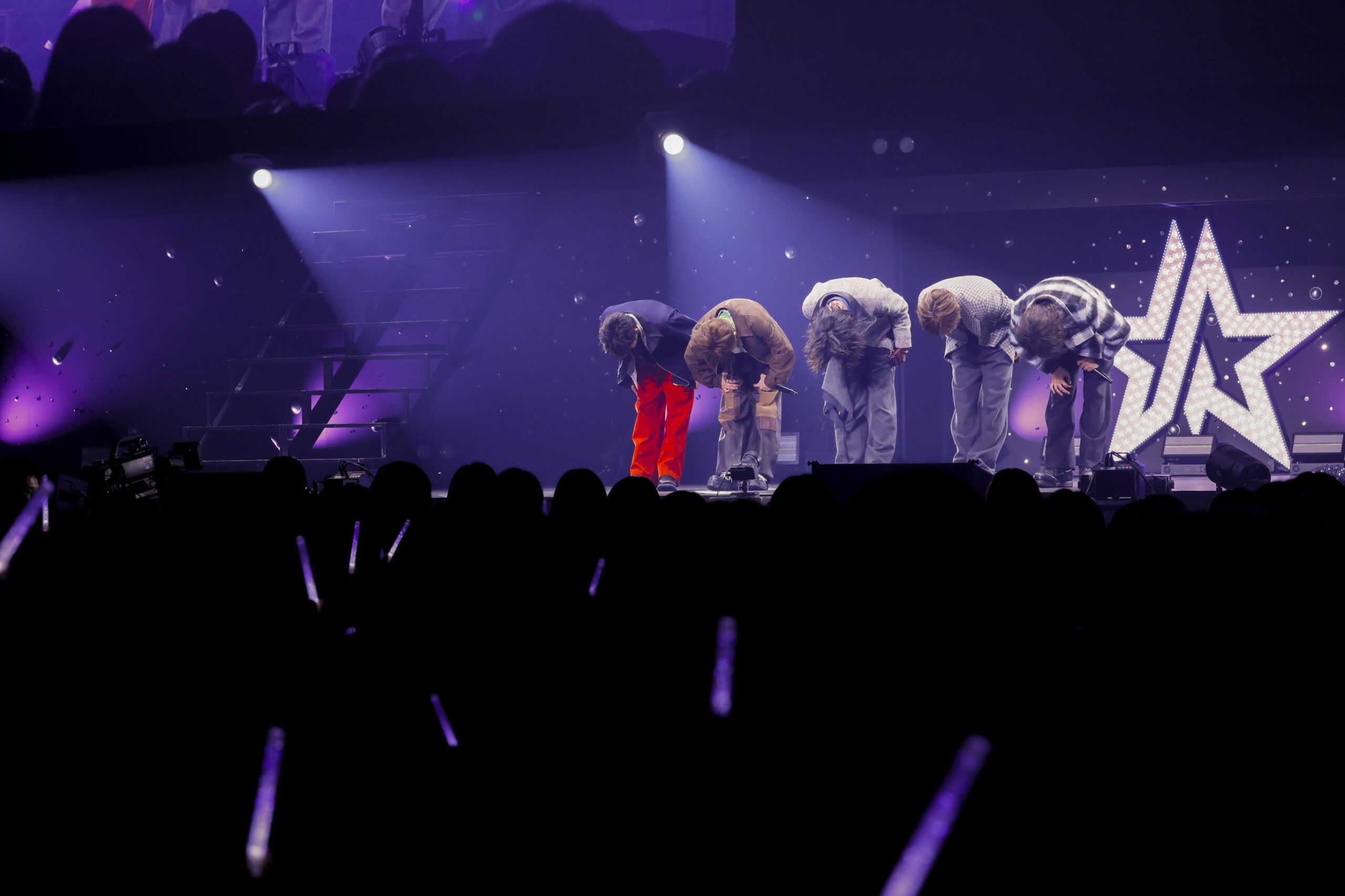プレデビュー曲「Moonchaser」、STARGLOW初のライブ「BMSG FES’25」、取材、レッスン、配信ライブ……「THE LAST PIECE」後のデビューに向けての日々とカウントダウンが映った。0に近付き、「THE LAST PIECE」のテーマ曲「At The Last」の音量が大きくなり、デビュー曲「Star Wish」へ。衣装を着替えた5人が音楽の女神への愛を込め、珠玉の歌/ラップ/ダンスで魅せる。深々とおじぎをした後、KANONが「改めて今日は本当にありがとうございました!」と叫び、5人それぞれがMCをした。