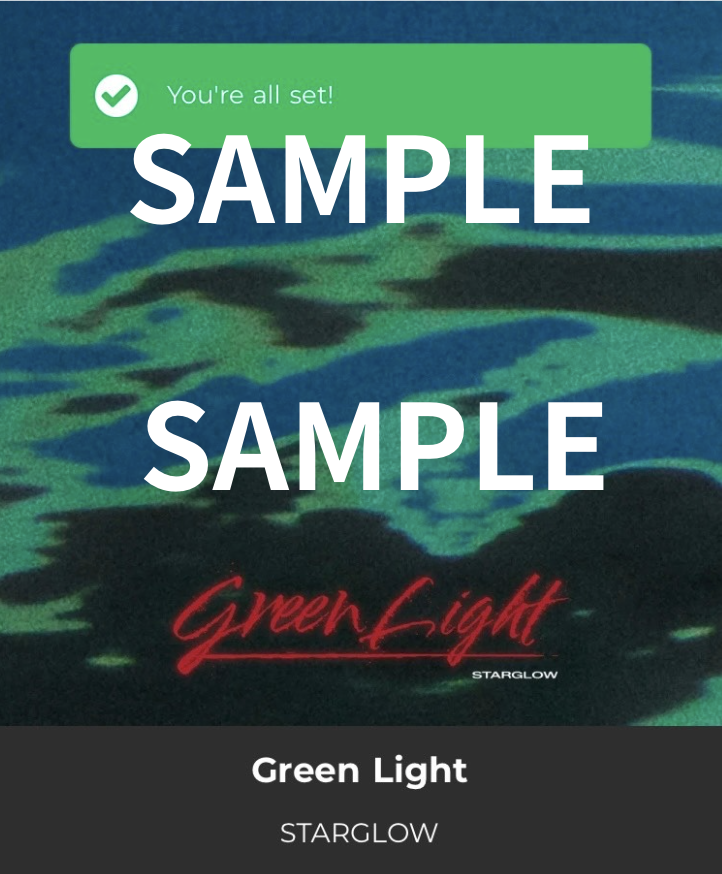 STARGLOW「Green Light」をApple MusicでPre-Add、またはSpotifyでPre-Saveしていただくと、配信日にご自身のライブラリに楽曲が追加されます。さらに応募フォームよりご応募いただいた方全員にメンバーセルフィーチェキ画像をプレゼントいたします。